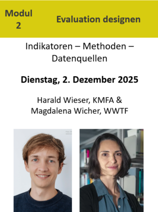 Teil zwei der drei Basismodule unseres Trainingsangebotes für FTI-Evaluierung. Das Trainingsangebot richtet sich sowohl an neue, als auch an erfahrene Akteur:innen im FTI-Bereich. Neben Wissensvermittlung steht vor allem Erfahrungsaustausch im Zentrum. Die drei Basismodule sind einzeln buchbar, nehmen aber aufeinander Bezug. Bei Abschluss aller drei Module wird ein Zertifikat für das abgeschlossene Basistraining ausgestellt. Modul 2 „Evaluation designen“: Dienstag, 30. Juni 2026, 10.00-17.00 und Mittwoch, 1. Juli 2026, 9.00-12.00 statt. Das Training findet im Hinterhaus, Schottenfeldgasse 12/6, 1070 Wien statt. Der Schwerpunkt dieses Moduls behandelt Indikatoren, Methoden und Datenquellen für Evaluationen im FTI-Bereich. Trainer:innen: Magdalena Wicher, WWTF – Wiener [...]
